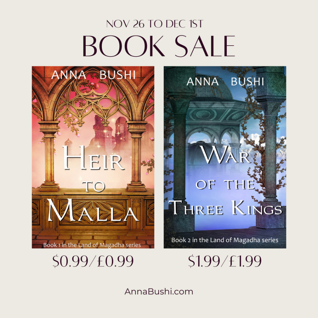 Prince in Shadow introduces the readers to the Land of Magadha. This novella is available to my Newsletter subscribers for free.